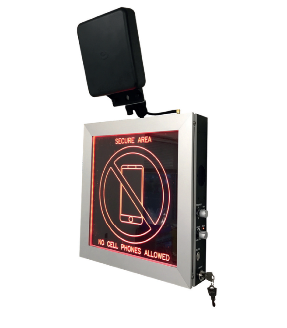 - W przypadku wykrycia telefonu alarmuje sygnałem zarówno świetlnym (LED), jak i dźwiękowym